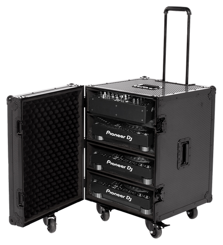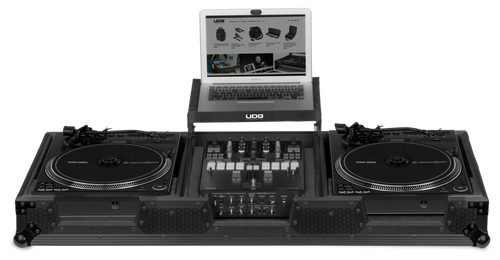 U91098BL Ultimate フライトケースセット PLX-CRSS12 & 10/12インチミキサー Black (ラップトップシェルフ&ホイール付)